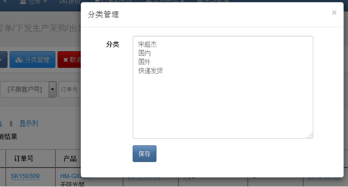 注意:系统可以支持多重分类。即一个订单可有多种分类。如上图。
