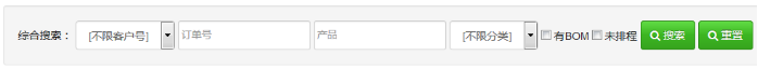 普通的搜索,可以直接在“订单和出货”页的表格(所有在生产的订单)搜索,使用“综合搜索”。