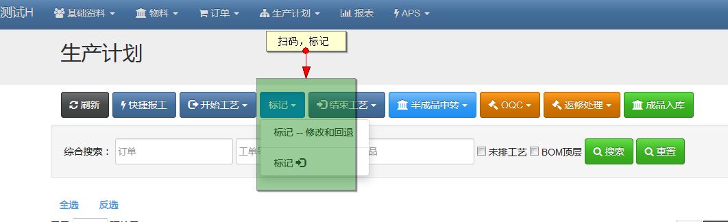 - 工艺标记内容【以空格分割】:我们假设企业在生产过程中要做一些特定的记录,比如签字,交接,确认等,但又不属于工艺开始和结束。比如物料流转到某个位置,签字,交接图纸等。并不是任何企业都需要记录。如果有需要的话,需要在这里填入标记内容,以空格分开。然后,你就能在生产计划页面看到这个。