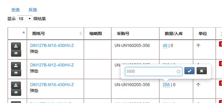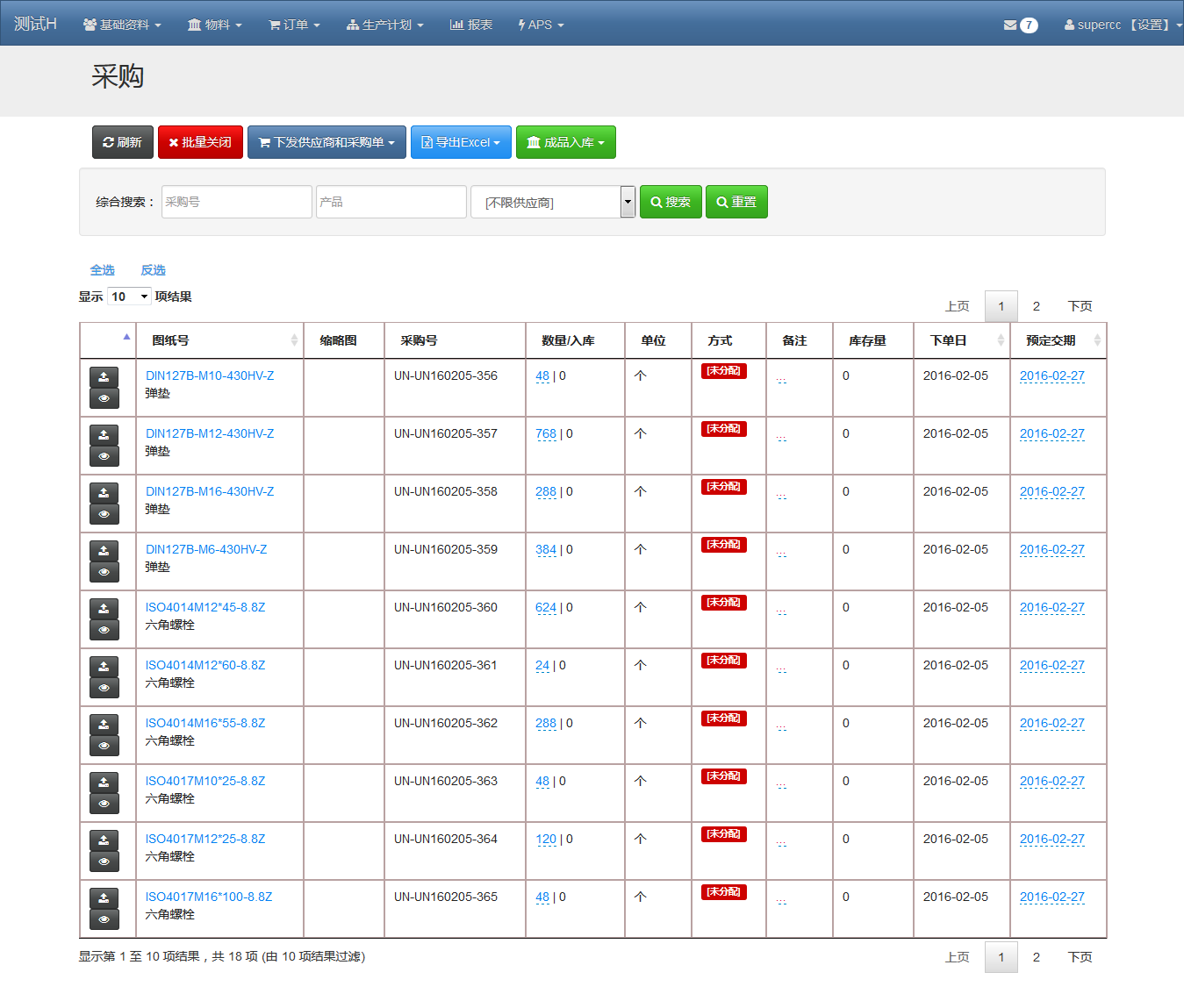 这是一个典型的采购页面,表格内的每一行都是一条采购工单,所有的物料请购都会变成采购工单,由采购员继续处理,最终由仓管完成检验收货。