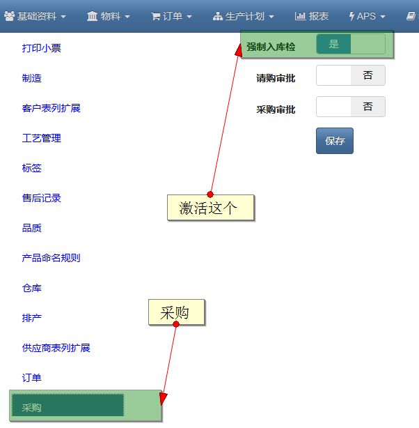 把入库和采购检测分开,而且入库前必须通过检测,那就是“入库前强制检测”。默认情况下,这个功能是关闭的(默认入库即代表检测,适合没有独立检测人员的企业流程)。我们首先需要在系统设置中将它打开。如下图: