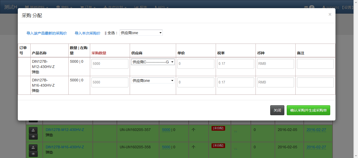 […] 跟普通的排产一样,可以录入请购数量(一般情况,系统自动填入缺料数量)和日期,然后提交。所有的请购项目会进入采购清单,走采购流程。 […]