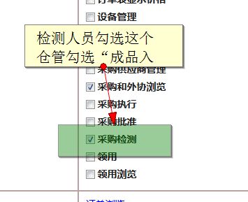 同时,对于检测人员和仓管。要把权限分开。如下图。