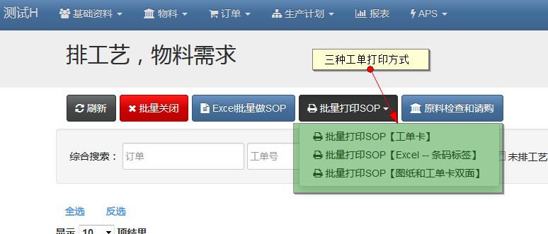 在工单打印之前,需要先排工艺,请见此章节