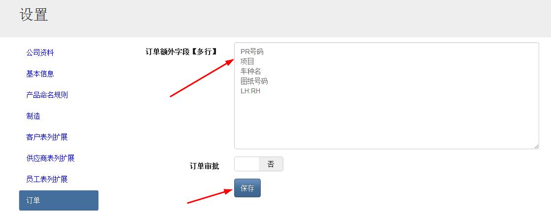 您的位置:首页 > 培训教程 > ERP/MES软件基础 速易天工MES系统如何自定义订单页面的表头内容 来源:通商软件2016-11-192016-11-18 ERP系统 & MES 生产管理系统 10万用户实施案例,ERP 系统实现微信、销售、库存、生产、财务、人资、办公等一体化管理 立即注册免费体验 速易天工MES系统有着强大的自定义功能,其中订单页面的表格中,可以根据企业自己的需求,添加需要的表头内容,极大的贴合了企业的习惯。 进入设置-系统设置,如下图 找到订单一项点击,如下图 出现如下图,在输入框里输入需要添加的字段,回车代表区分,输入完点击保存 在订单页面查看效果,如下图 在线疑问仍未解决?专业顾问为您一对一讲解 24小时人工在线已服务6865位顾客5分钟内回复 马上咨询