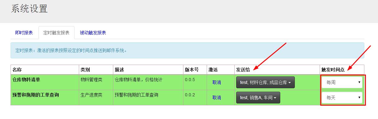 这两种报表支持定时触发,可以根据用户的要求自己设定触发时间,如下图