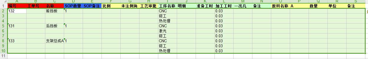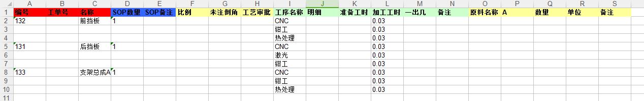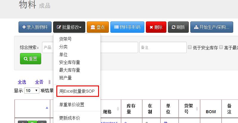 - 点击用批量修改–Excel批量编辑SOP(在物料页面)或者Excel批量编辑SOP(在排工艺页面),如下图