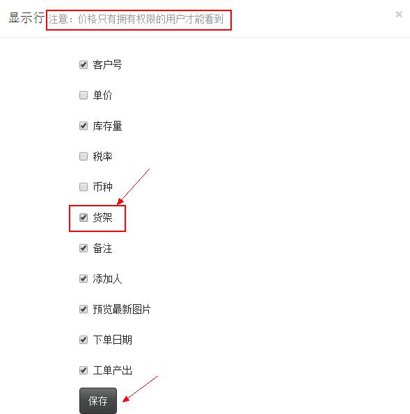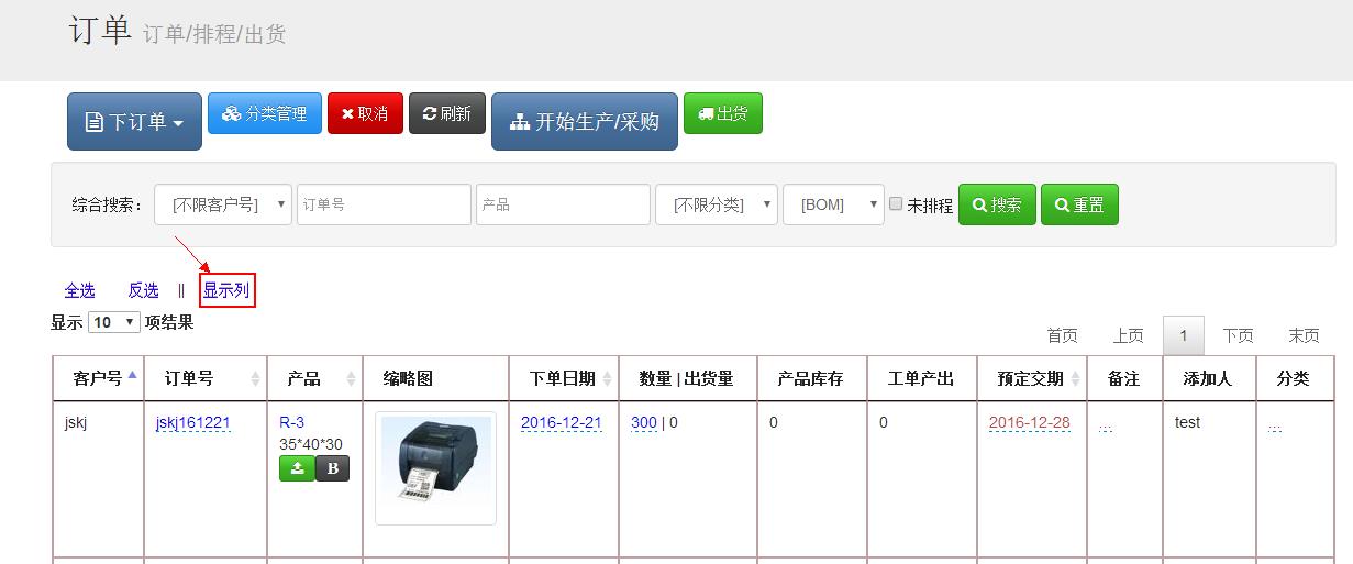 您的位置:首页 > 培训教程 > ERP/MES软件基础 速易天工MES系统显示列功能之订单篇 来源:通商软件2017-01-072017-01-06 ERP系统 & MES 生产管理系统 10万用户实施案例,ERP 系统实现微信、销售、库存、生产、财务、人资、办公等一体化管理 立即注册免费体验 速易天工MES显示列功能是可以根据使用者的需求,让页面的表格字段可以自定义的显示出来,这样更加人性化。 首先进入订单页面会看到有个显示列,如下图 点击“显示列”后,会出现选择页面,选择需要显示的,把它√选,如下图。注意价格只有拥有权限的用户才能看到的。 选中要显示的内容后,点击保存,就可以在表格里看到了,如下图。 在线疑问仍未解决?专业顾问为您一对一讲解 24小时人工在线已服务6865位顾客5分钟内回复 马上咨询