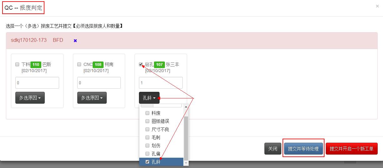 OQC操作分返修开单和报废开单