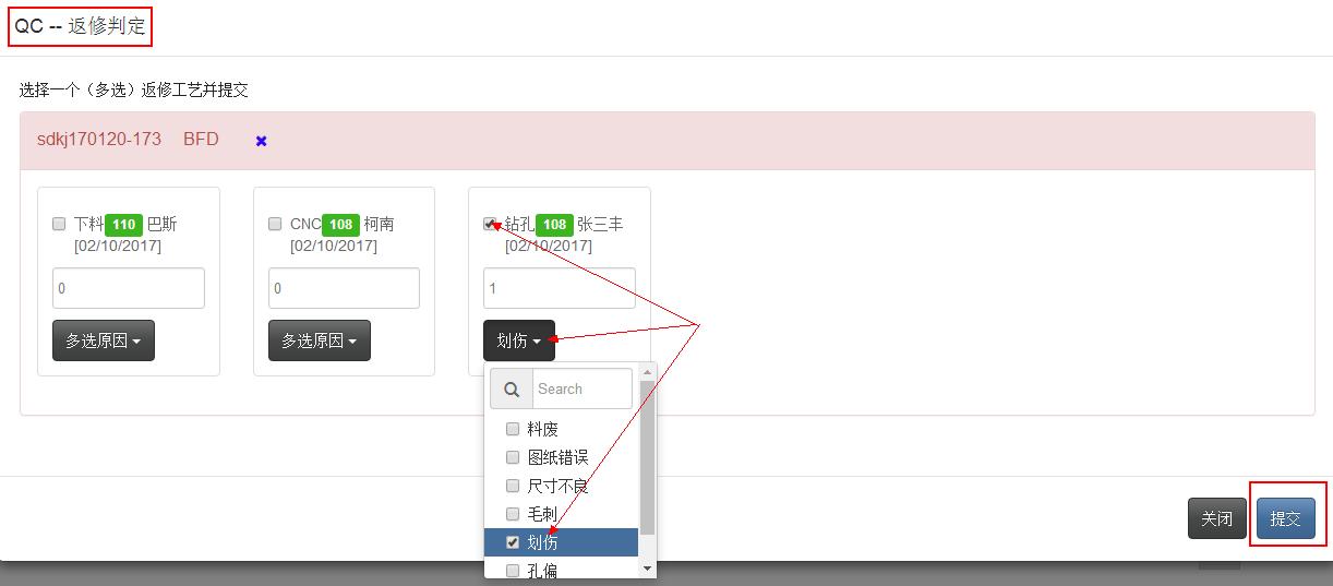 返修开单,选择并填入返修数量和原因