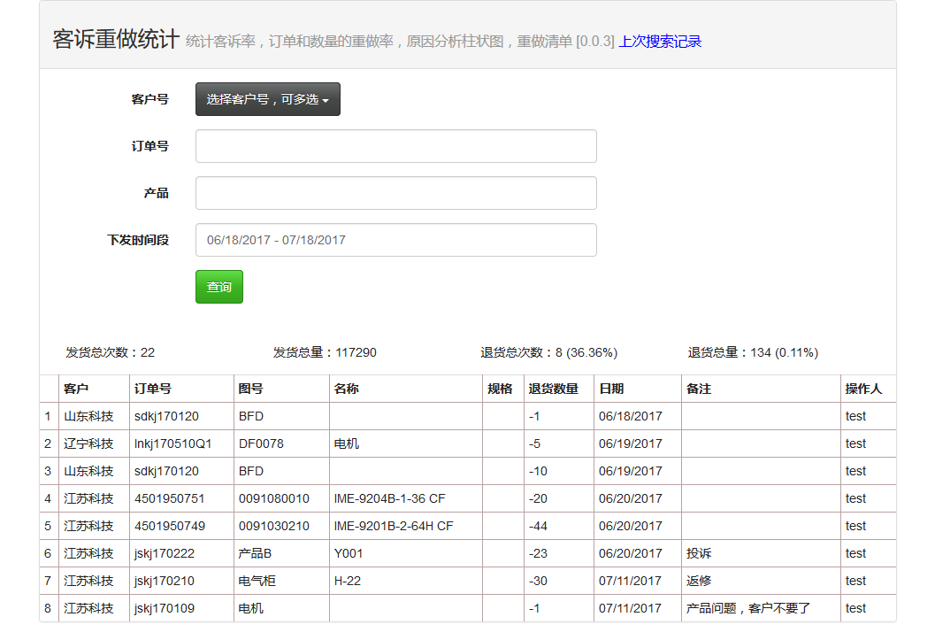 进一步地,我们还可以根据客诉返货情况做出统计。