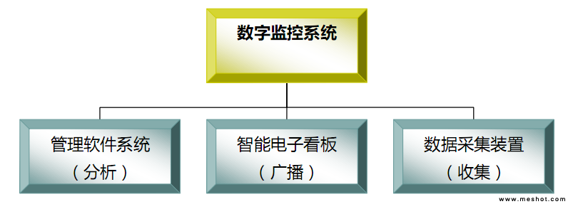 MES,制造执行系统。我们知道MES是管理生产用的专业的管理软件。不过有时候ERP软件也会带有生产模块,它们的不同就在于MES系统多了两个东西:采集系统和看板系统。MES系统如下图: