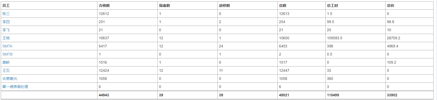 4、上系统后,员工的工作记录都有直接数据的显示,工时工价一目了然,激励了员工也方便了人事统计。