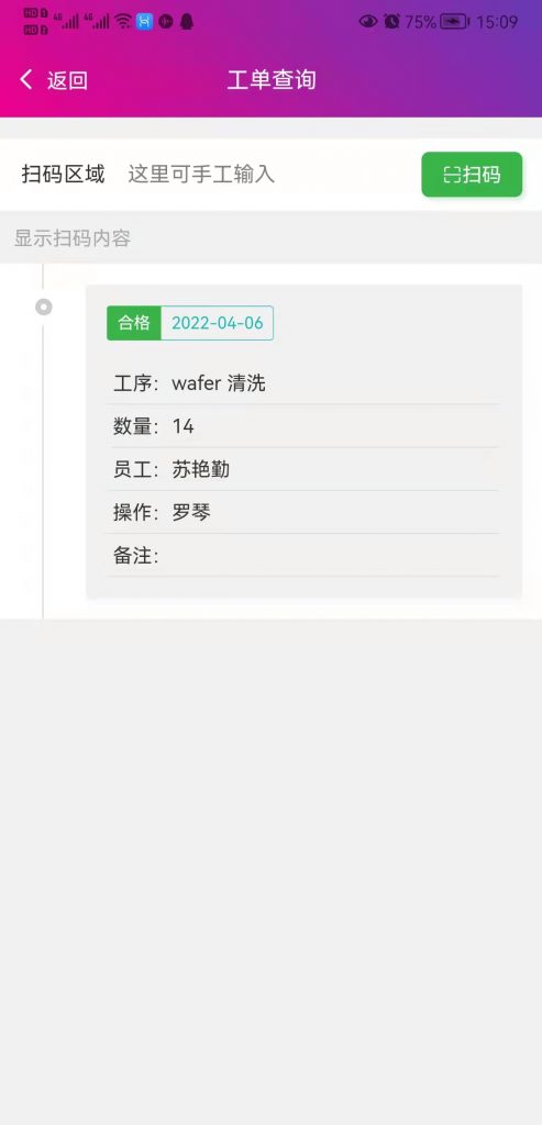 4、车间员工通过手机扫码报工代替手工填写,采集数据更加方便。而且报工实时更新生产进度到生产进度表,通过APP可以查询,手机即可查看生产状况。