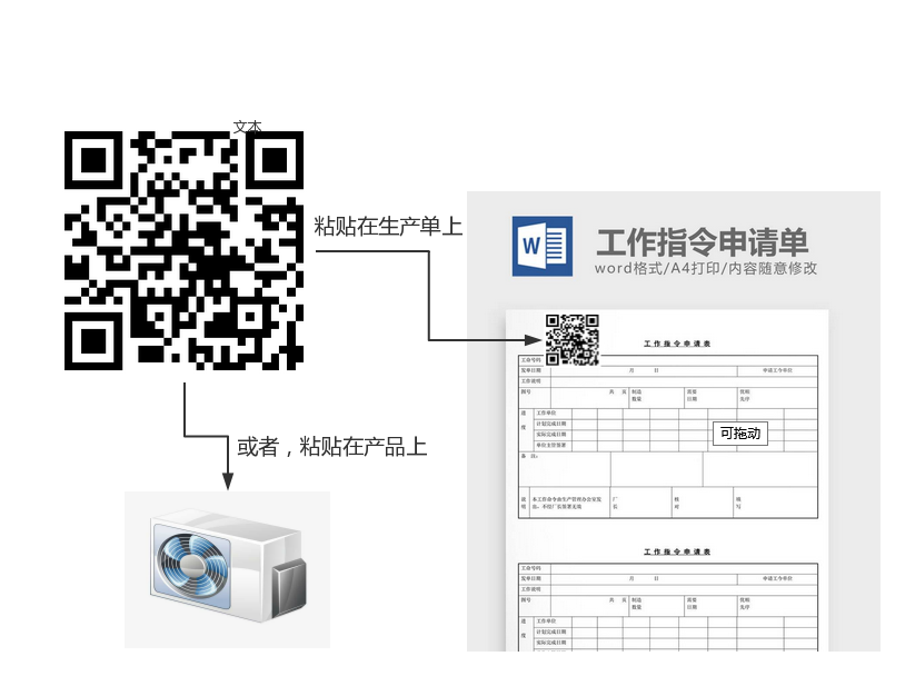 然后通过打印机打印出二维码,贴在产品,或者生产指令单,或者出货标签上面
