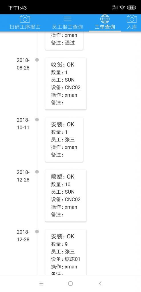 通过二维码的工序报工,记录生产流程