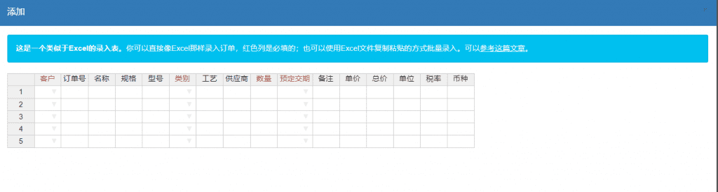 1、用软件下订单很系统很方便,可以直接将客户下的excel订单直接导入到MES生产系统中,既方便又减少了人为错误,提升员工效率80%。