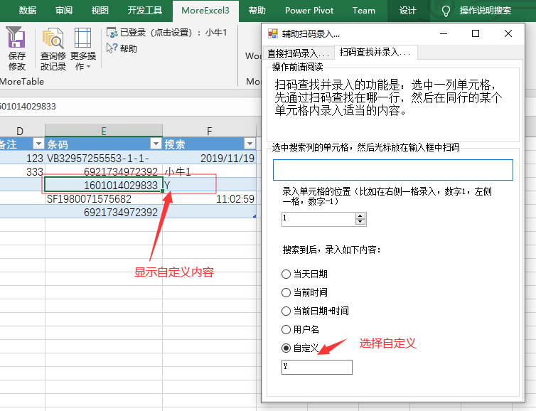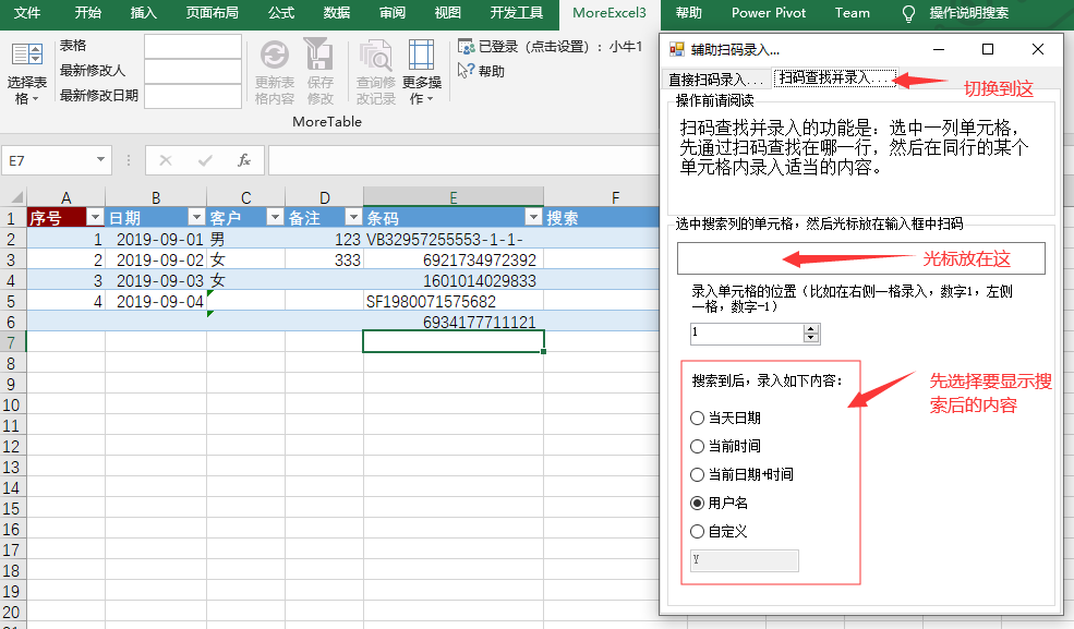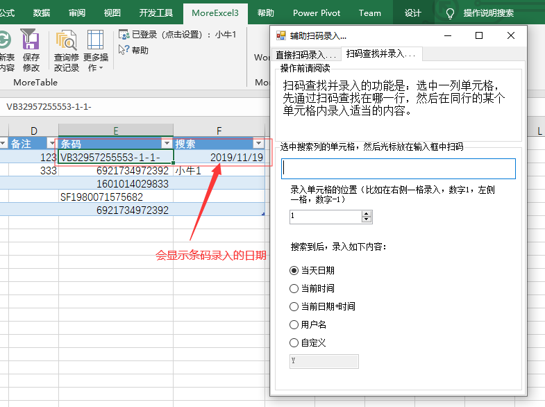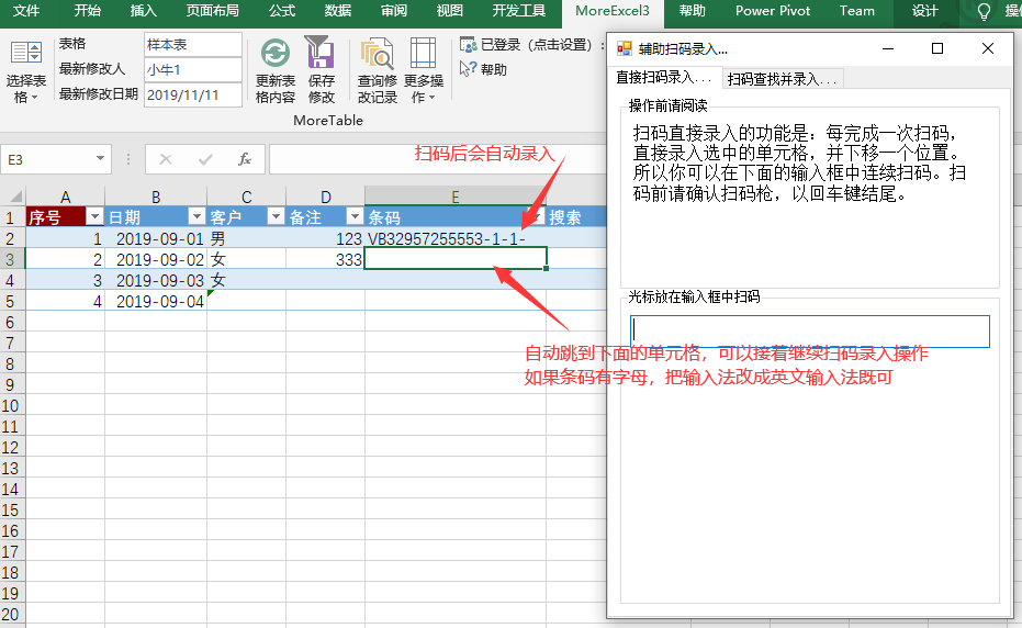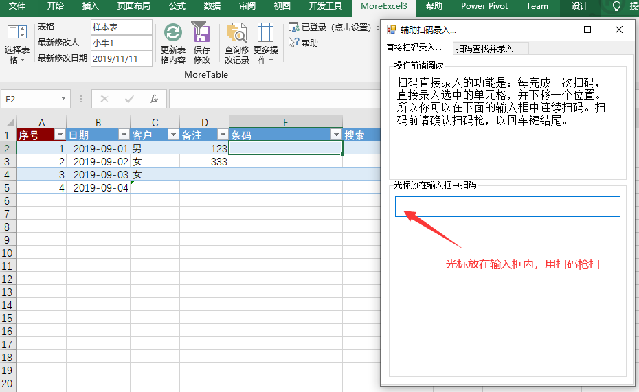11-18日,MoreExcel3新增了扫码录入的功能。扫码录入有两种方式: