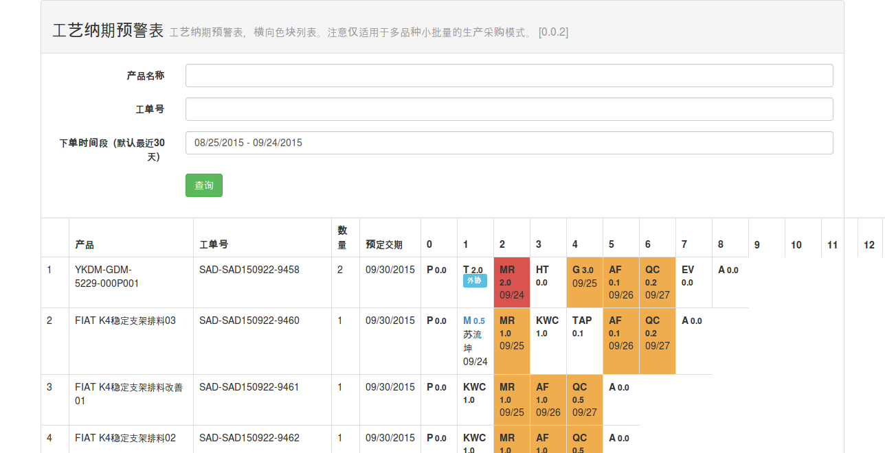 “工序纳期预警报表”只针对计时制的散件生产。搞机械加工的都知道,工艺步骤复杂很容易被“遗漏”,只能等到要出货的那刻才会发现拖期,这对生产管理十分不利。