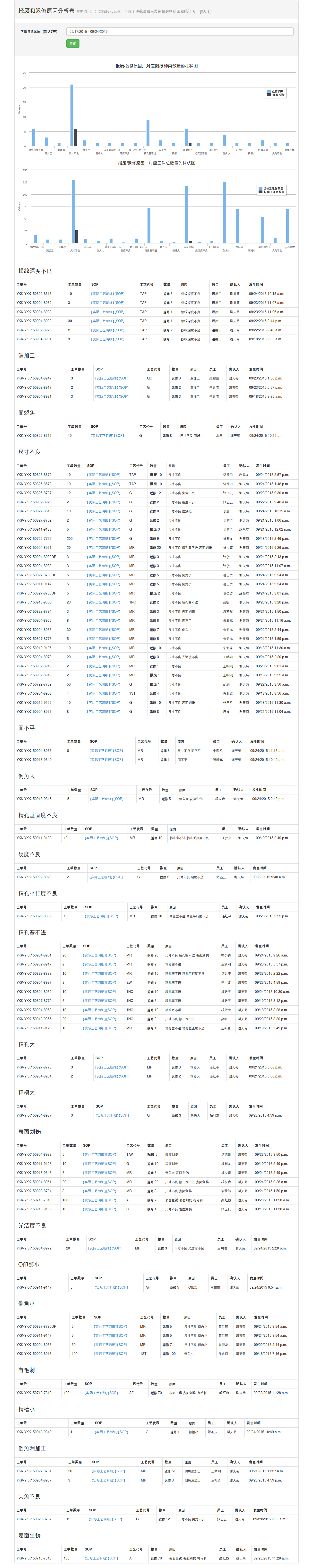 我们来看一张“报废和返修原因分析表”报表。