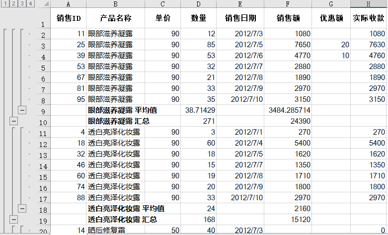 分类汇总销售记录