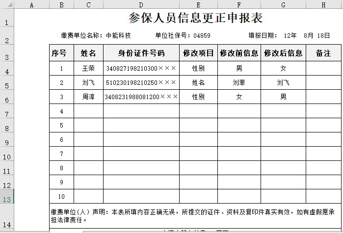 参保人员信息更正申报表