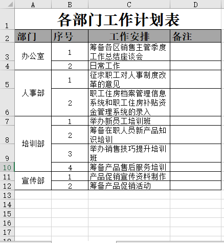 各部门工作计划表