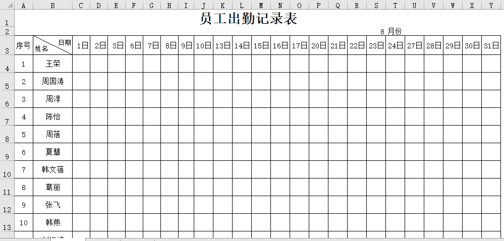 员工出勤记录表