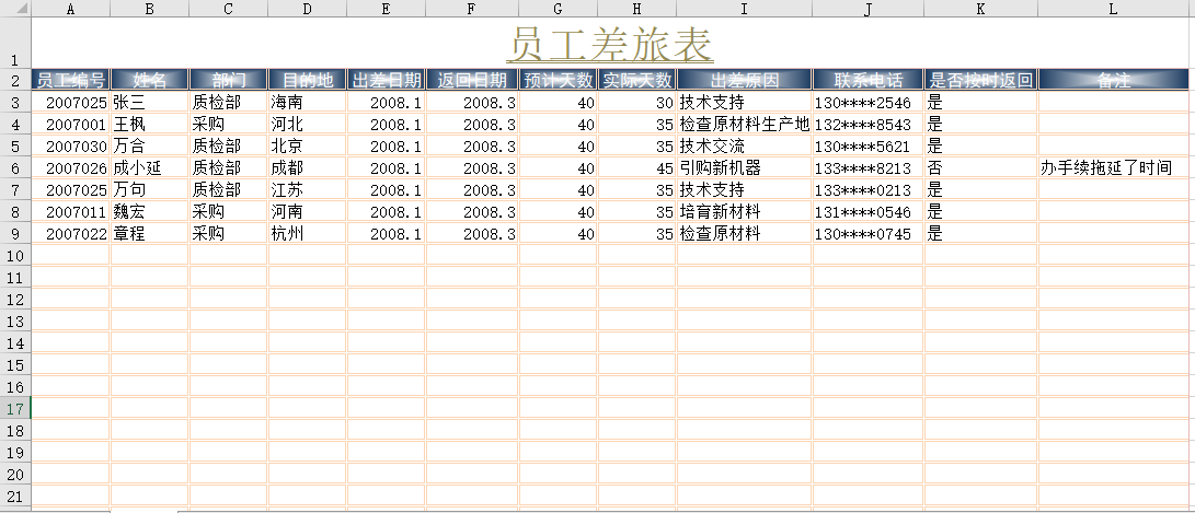 员工差旅表