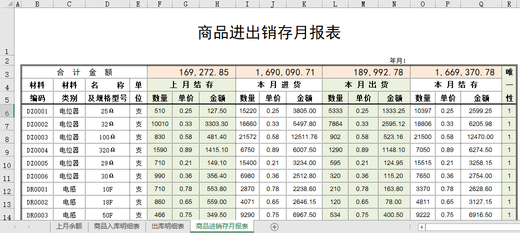 商品进出销存月报表