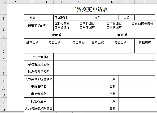 工资变更申请书