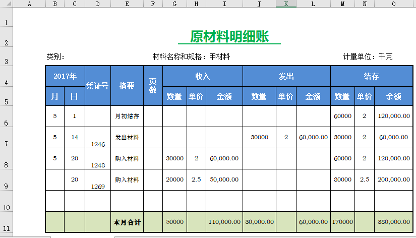 数量金额式明细账