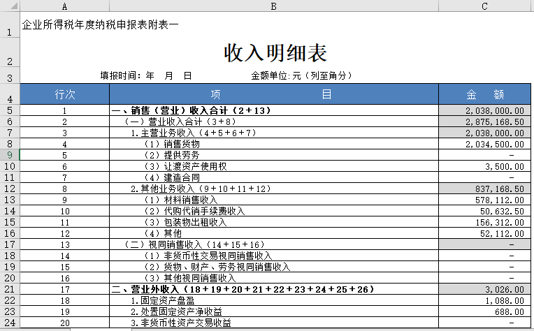 收入明细表