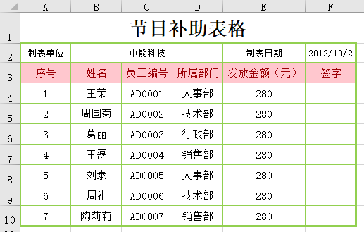 节日补助表