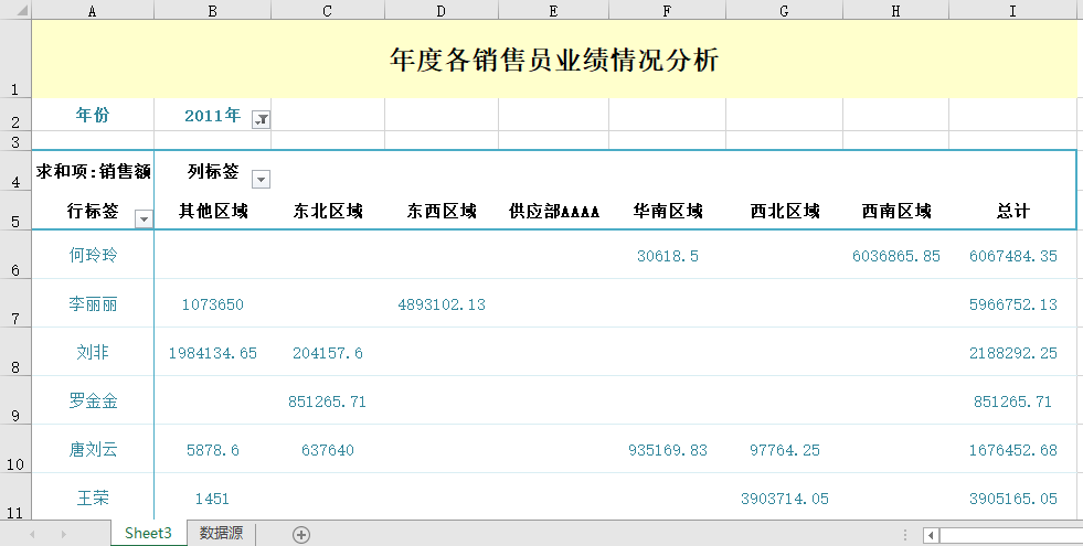 销售员业绩情况分析