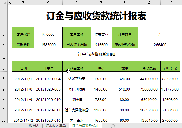 销售订金与应收款统计报表
