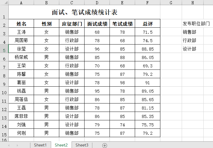 面试、笔试成绩统计表