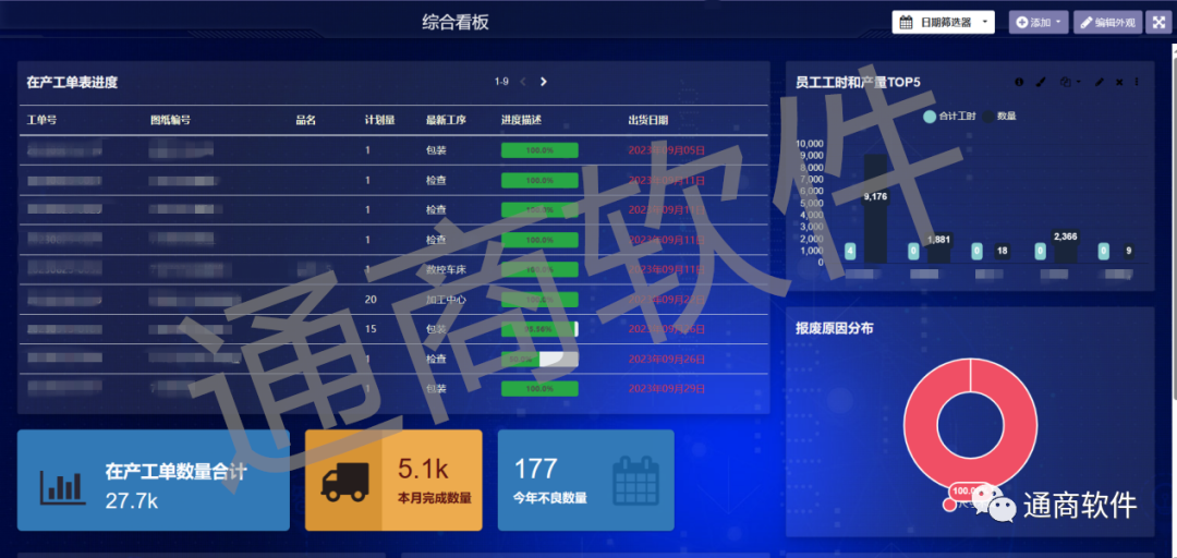 能够对生产过程中产生的数据进行统计查询,分析后形成报表,为后续工作提供参考数据与决策支持。生产过程中的数据丰富,系统根据需要,定制不同的统计查询功能,包括:按物料分类统计出入库基于工序的工时产能统计、报工产出统计(上月以及环比)、基于工序的产出合格率统计、半成品库存统计、报废原因统计、返修原因统计、员工生产报表。